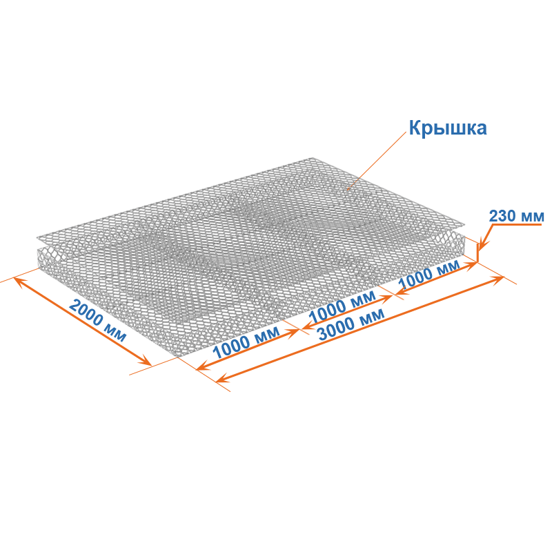 Длина, Ширина, Высота, м Размер ячейки, мм Диаметр проволоки, мм Тип покрытия