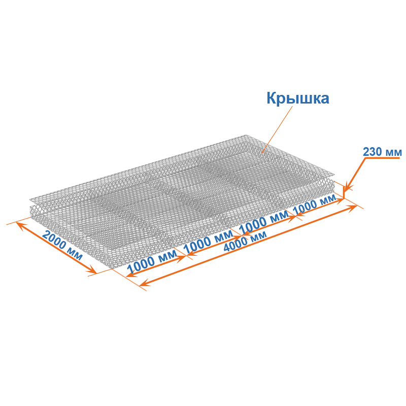 Матрасы Рено 4x2x0,23 — плоские габионные секции из сетки двойного кручения с ячейкой 60х80, проволокой 2,2 мм и покрытием Цинк.