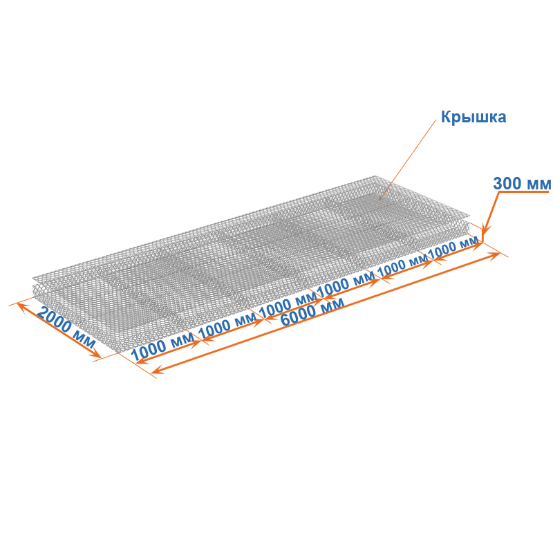 Габион матрац 6x2x0,3 – это габион с большой площадью и малой высотой. Внутри конструкции расположены диафрагмы, которые создают дополнительное армирование.